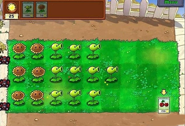 还是没什么难度,先沉住气,别管僵尸。 一口气放上6个向日葵。 然后补豌豆射手即可,有钱就补豌豆射手,后面不需要向日葵了。