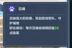 召唤职业,每次召唤会给城墙回复 20 点血量。