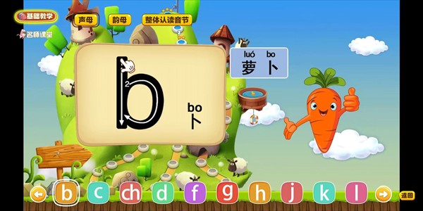 2、渐进式教学:采用循序渐进的教学方式,从基础声母韵母到整体认读音节逐步深入。每个板块设置丰富互动环节和趣味挑战,帮助孩子稳步提升拼音能力。