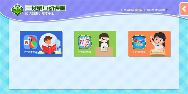 5、在首页点击右上角【教育中学】还有【小学同步单词】、【小学满分作文】以及【小学同步课堂】三大特色服务功能。